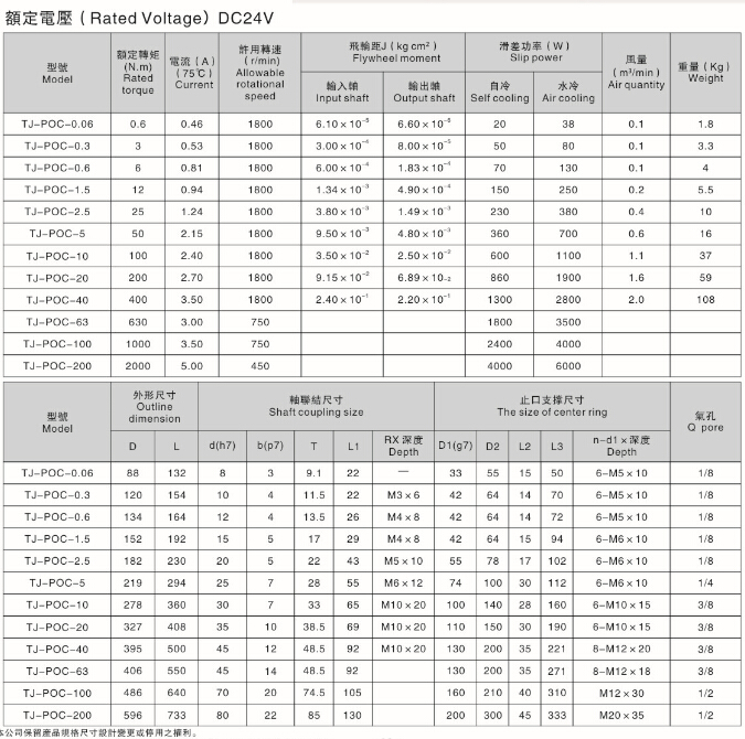 【臺(tái)灣天機(jī)】雙軸磁粉離合器,收料張力磁粉離合器(TJ-POC)即是雙伸出軸磁粉離合器DC24V,由于其結(jié)構(gòu)結(jié)單,可靠性高,耐用性高,轉(zhuǎn)矩控制比較簡單,并可采用交流電動(dòng)機(jī)來作為傳動(dòng)電機(jī),所以在張力控制系統(tǒng)當(dāng)中也被廣泛應(yīng)用。常見的卷繞機(jī)械恒張力控制都是卷取機(jī)構(gòu),對(duì)于開卷機(jī)械,在運(yùn)行中一般只在開卷軸上加一個(gè)機(jī)械的制動(dòng)力矩。但隨著自動(dòng)化技術(shù)的提高,大部分生產(chǎn)機(jī)械的開卷機(jī)械都采用TJ-POC雙軸磁粉離合器,除此之外,還有印刷機(jī)械、包裝機(jī)械、電線電纜等工業(yè)機(jī)械收卷、張力控制系統(tǒng)。