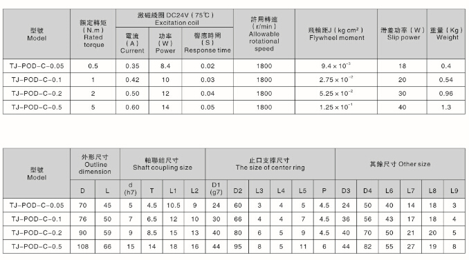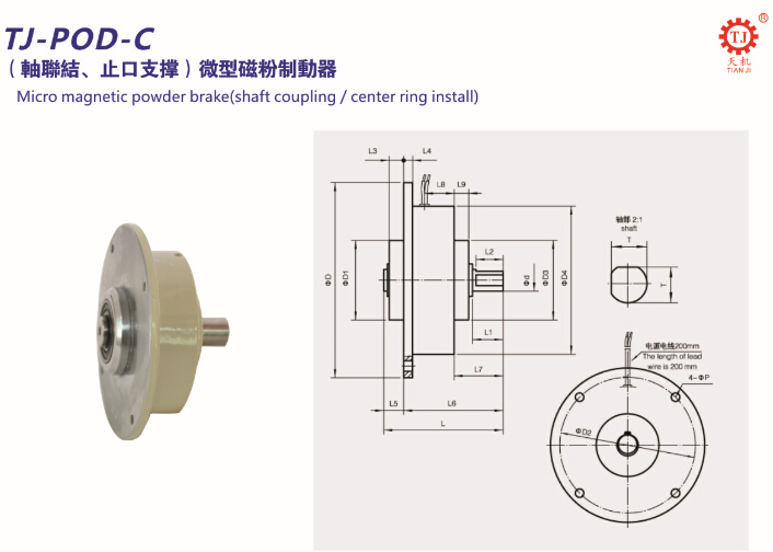 該型(TJ-POD-C)磁粉制動器為伸出軸型自動冷卻式制動器,構(gòu)造精度高,高精密。由于其體積比較小,有效地降低旋轉(zhuǎn)部的慣性力矩,安裝方便簡單、耐溫、耐用。注意的是:在空轉(zhuǎn)的狀態(tài)下,其空轉(zhuǎn)轉(zhuǎn)矩在1000r/min時不宜超過額定轉(zhuǎn)矩的3%,在1800r/min時不宜超過額定轉(zhuǎn)矩的5%。