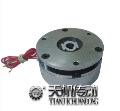 天機(jī)傳動(dòng)廠家生產(chǎn)的電磁斷電剎車器也稱失電制動(dòng)器,是由磁軛、勵(lì)磁線圈、彈簧、制動(dòng)盤、銜鐵、花鍵套、安裝鏍釘?shù)冉M成,制動(dòng)器安裝在設(shè)備的法蘭盤(或電動(dòng)機(jī))的后端伸,傳動(dòng)軸與花鍵套與制動(dòng)盤聯(lián)結(jié)。  勵(lì)磁線圈接通額定電壓(DC)時(shí),電磁力吸合銜鐵,使銜鐵與制動(dòng)盤脫離(釋放),這時(shí)傳動(dòng)軸帶著制動(dòng)盤正常運(yùn)轉(zhuǎn)或啟動(dòng),當(dāng)傳動(dòng)系統(tǒng)分離或斷電時(shí),制動(dòng)器也同時(shí)斷電,此時(shí)彈簧施壓于銜鐵,迫使制動(dòng)盤與銜鐵及法蘭盤之間產(chǎn)生摩擦力矩,使傳動(dòng)軸快速停轉(zhuǎn)。