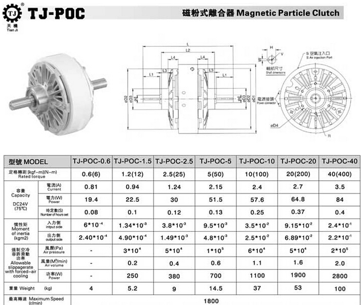TJ-POC法蘭式磁粉離合器規(guī)格參數(shù)如圖: