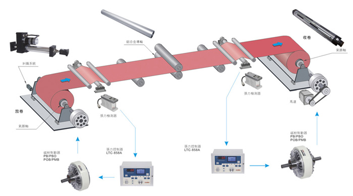 收放卷行業(yè)操作在磁帶制造中是必不可少的,這些可能是極其敏感的過程,會影響最終產(chǎn)品的質(zhì)量。例如,施加在膠帶上的過大張力會損壞紙幅結(jié)構(gòu),導(dǎo)致其卡扣或拉伸。更確切地說,隨著輥?zhàn)又睆綔p小,輥?zhàn)铀俣葘⒃黾右员3趾愣ǖ木€速度,但是必須調(diào)節(jié)張力制動力使幅材上的張力保持一致。因此自動張力控制器是必不可少的質(zhì)量保證設(shè)備。