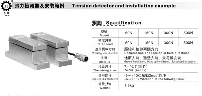 張力傳感器(張力檢測器)安裝尺寸規(guī)格、范例如下圖,如需了解更多點擊參考張力傳感器安裝方式及注意事項。